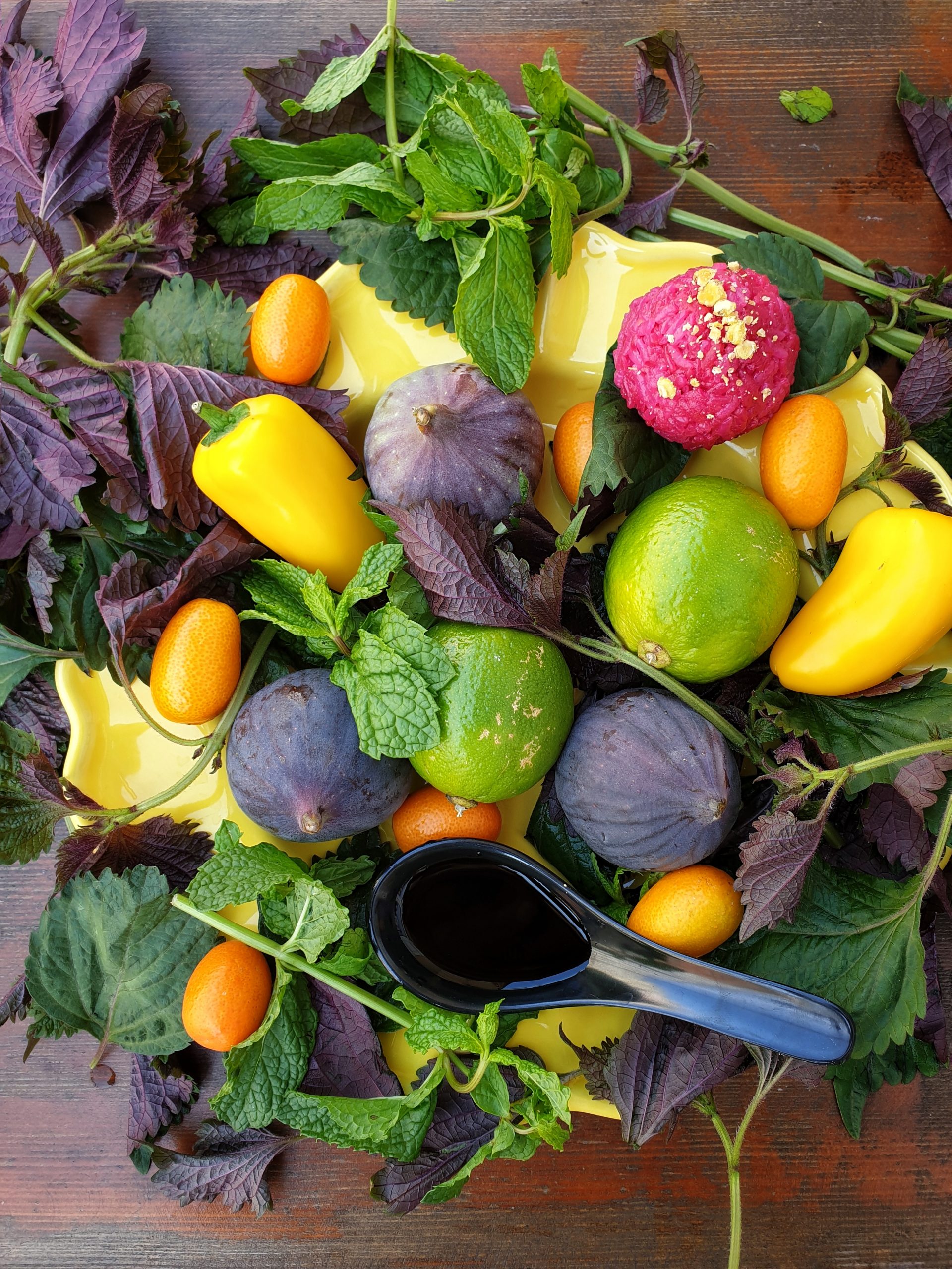 Frühstück ans Bett war gewünscht, aber der Roomservice war noch in Elternzeit und so servierte Gott den Garten Eden als Tischgebet mit frischer Minze und nach Mekka ausgerichteten Minzblättern selbst. In den Reis hatte er Safran gebacken und die Feigen gabs zur himmelgemachten Limonade an Blattsalat karamellisiert.